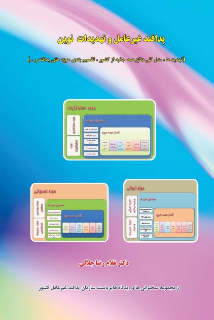 کتاب «پدافند غیرعامل و تهدیدات نوین» برگرفته از سخنرانی‌ها و دیدگاه‌های سردار دکتر غلامرضا جلالی، رئیس سازمان پدافند غیرعامل است.